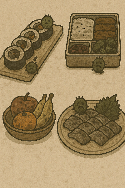 - 실온에서 오랫동안 보관한 도시락, 김밥 등