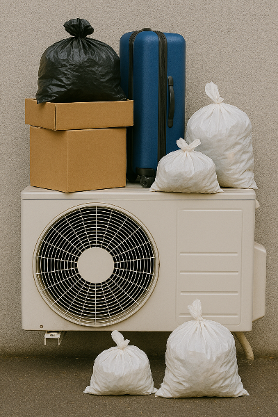 실외기는 열을 배출하는 장치이므로 주변에 물건을 두면 과열됩니다.